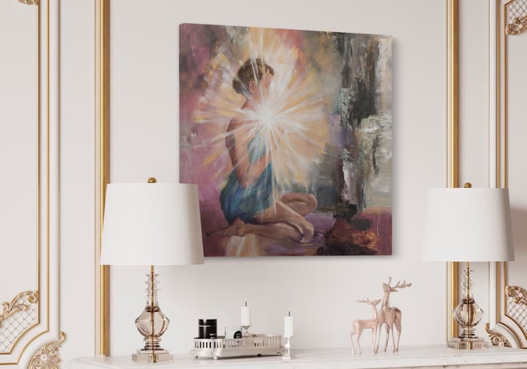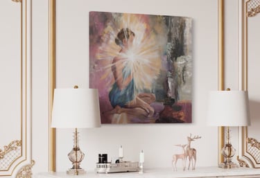 Here is where I deep dive into the process of creating your Painting. Layers of Love and beauty dance into form through my palette paints and passion. I don't stop until I can FEEL it is Complete and I am giggling with Delight at the Beauty.